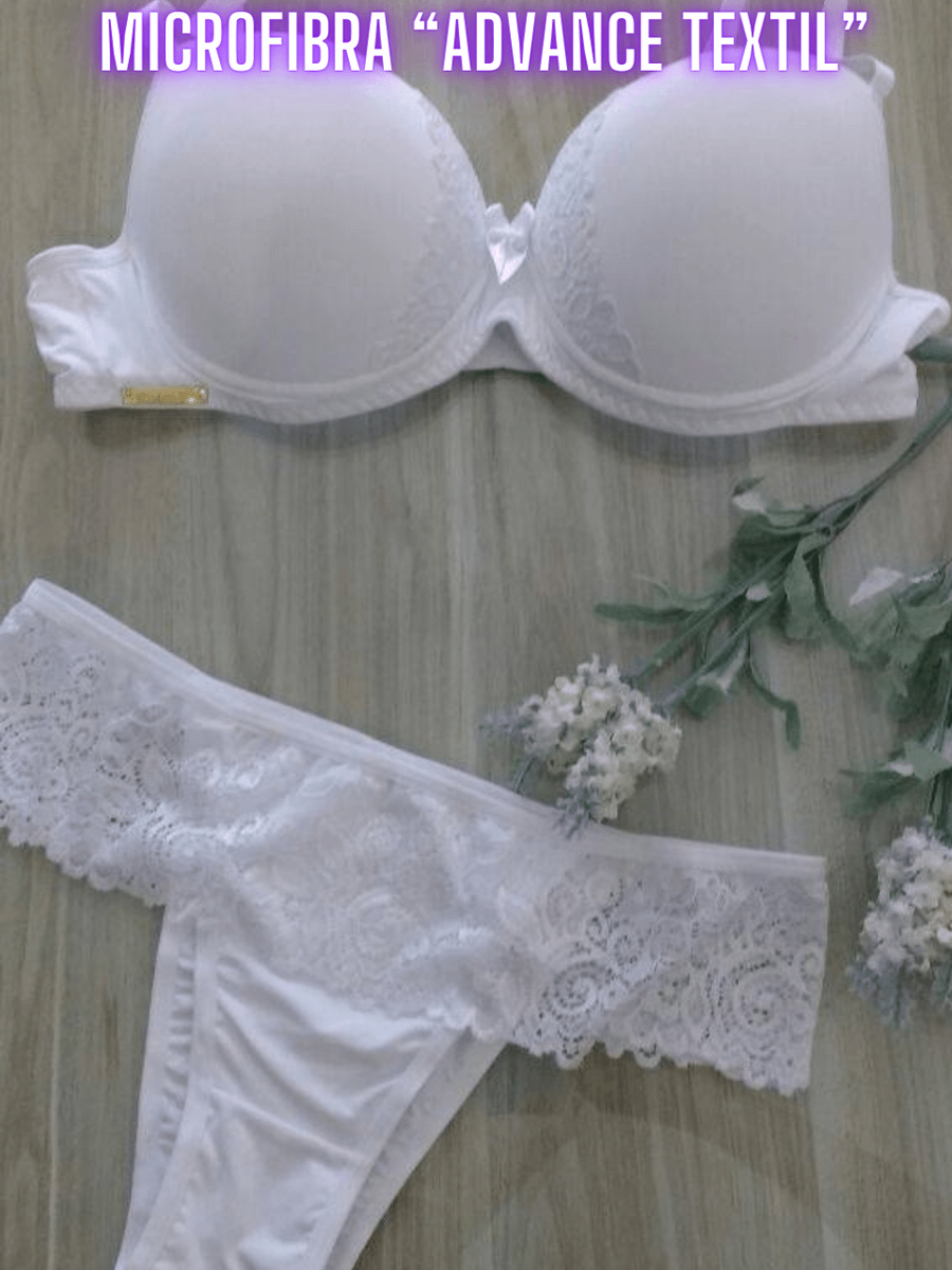 Related pictures for Conjunto Lingerie Plus Size Branco Microfibra Renda Luxo Bojo Calcinha e Sutiã Moda Íntima