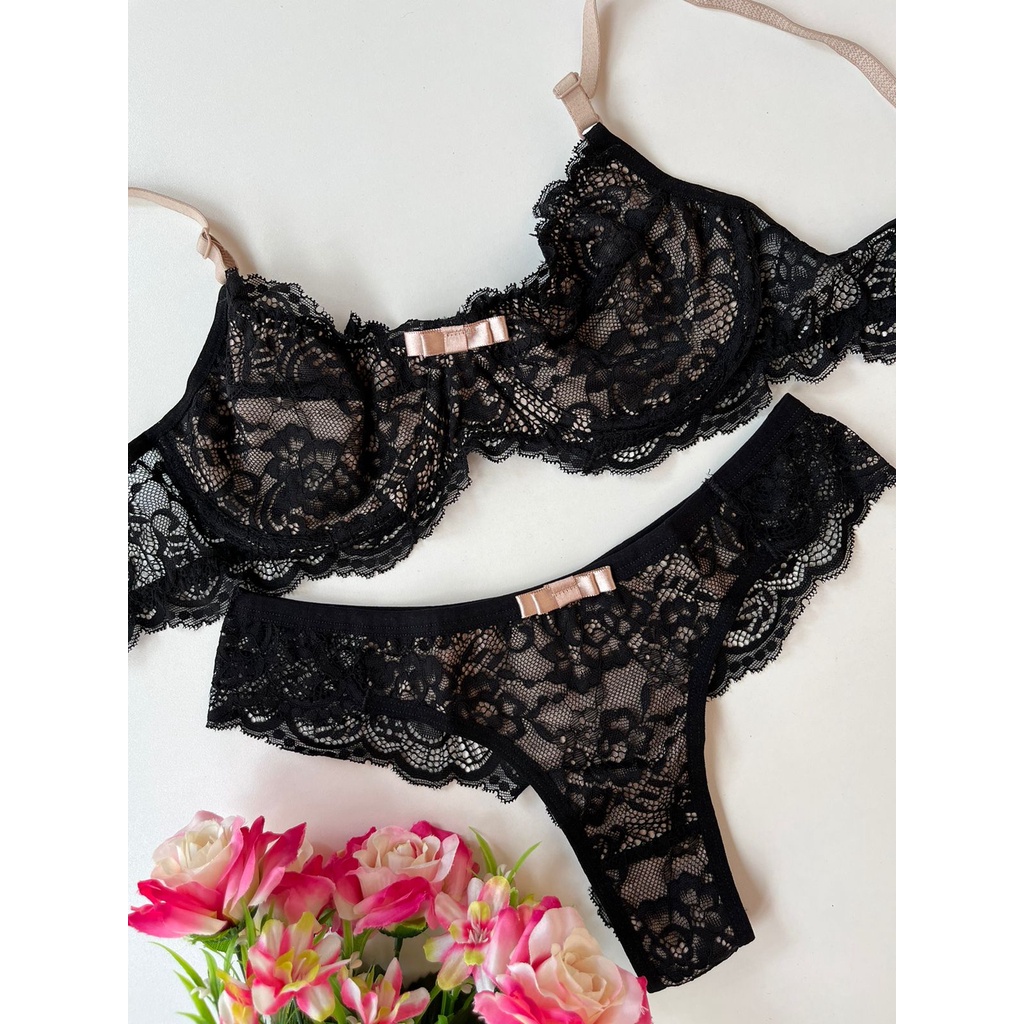 Conjunto Lingerie Sem Bojo Aro Calcinha e Sutiã Renda Luxo ref