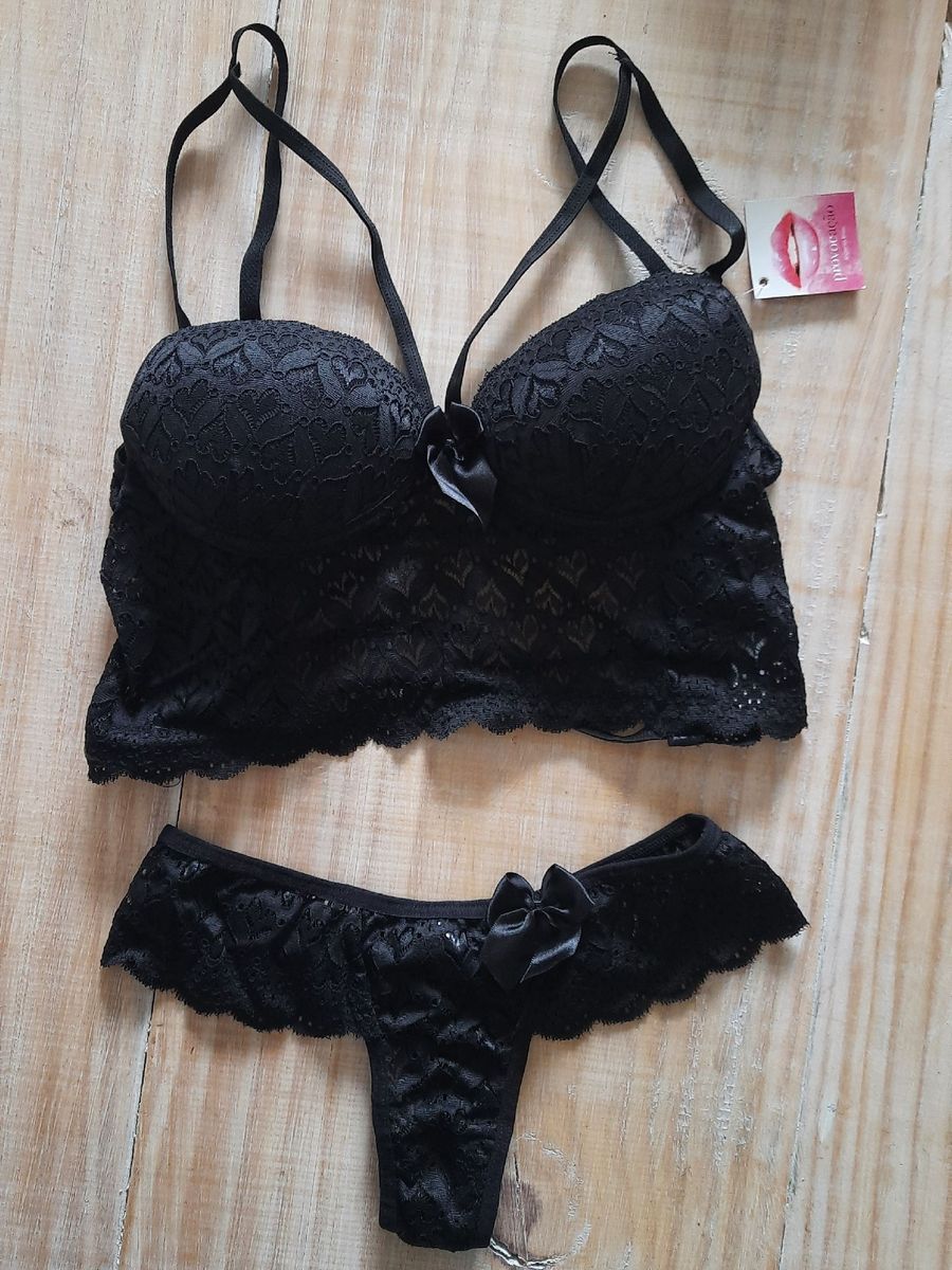Conjunto Lingerie em Renda Preta Lingerie Feminina Provocação Lingerie Nunca Usado 62671137 is a popular picture for sexy and hot.