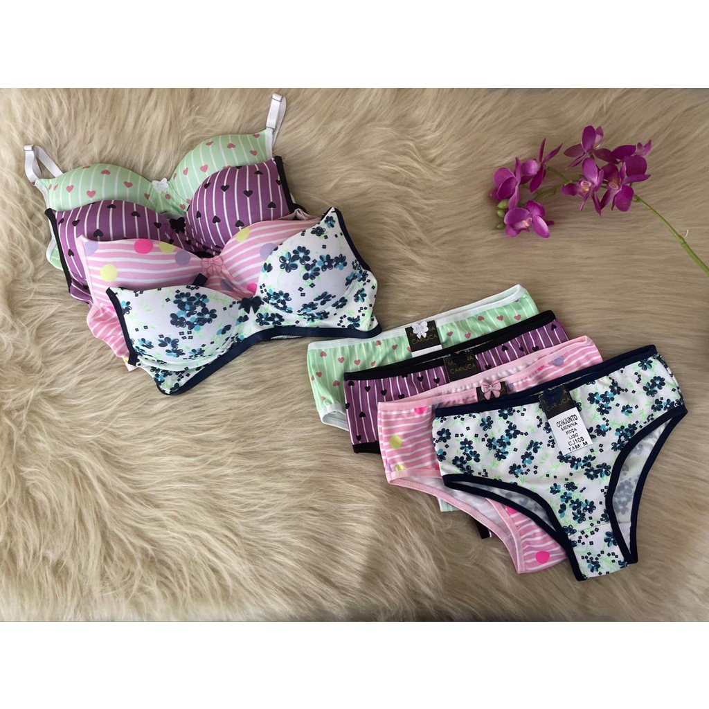 Tag : Conjunto calcinha sutiã Menina moça bojo lingerie juvenil atacado Cj100 Shopee Brasil