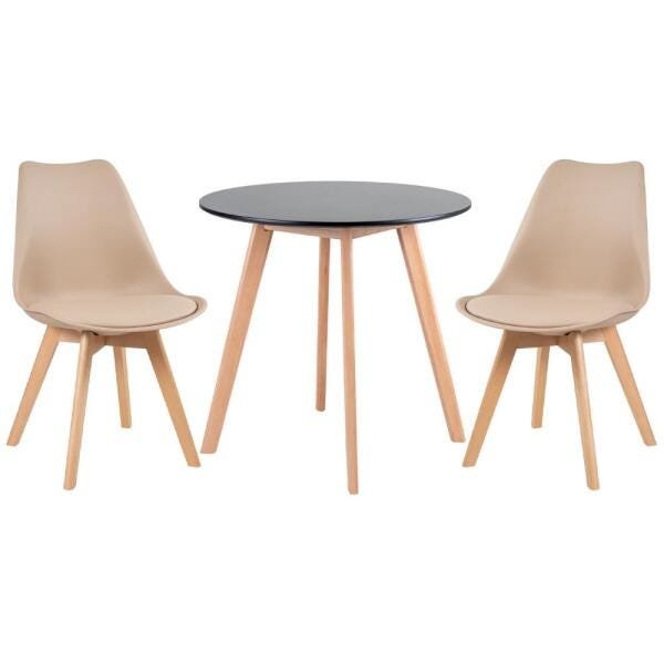Conjunto De Mesa Redonda Leda 70cm Preto 2 Cadeiras Estofadas Leda Nude MadeiraMadeira
