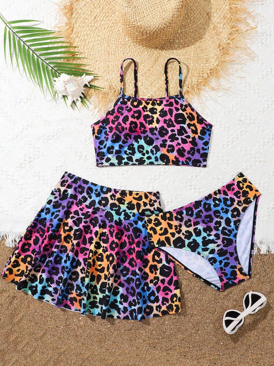 Tag : Conjunto de bikini estampado de leopardo con traje de baño conjunto de bikini y falda de baño