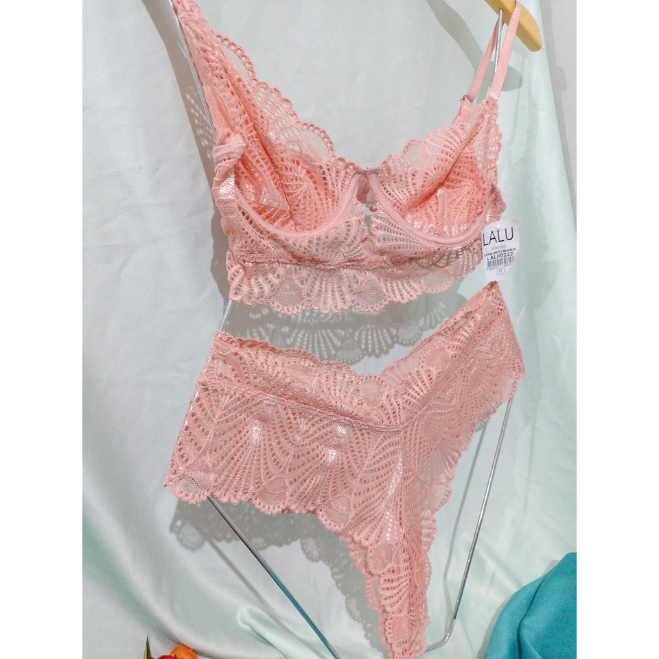 Conjunto lingerie de renda sem bojo meia taça renda calcinha tanga Shopee Brasil is a popular picture for sexy and hot.