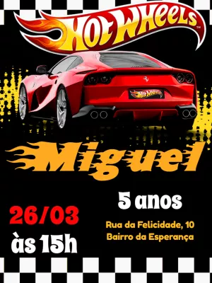 Tag : Convite Hot Wheels Dourado Editar e Personalizar Fácil