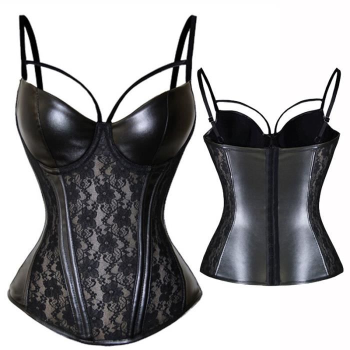Tag : Corset sexy en cuir et dentelle avec jarretière lingerie grande taille soutien gorge push up