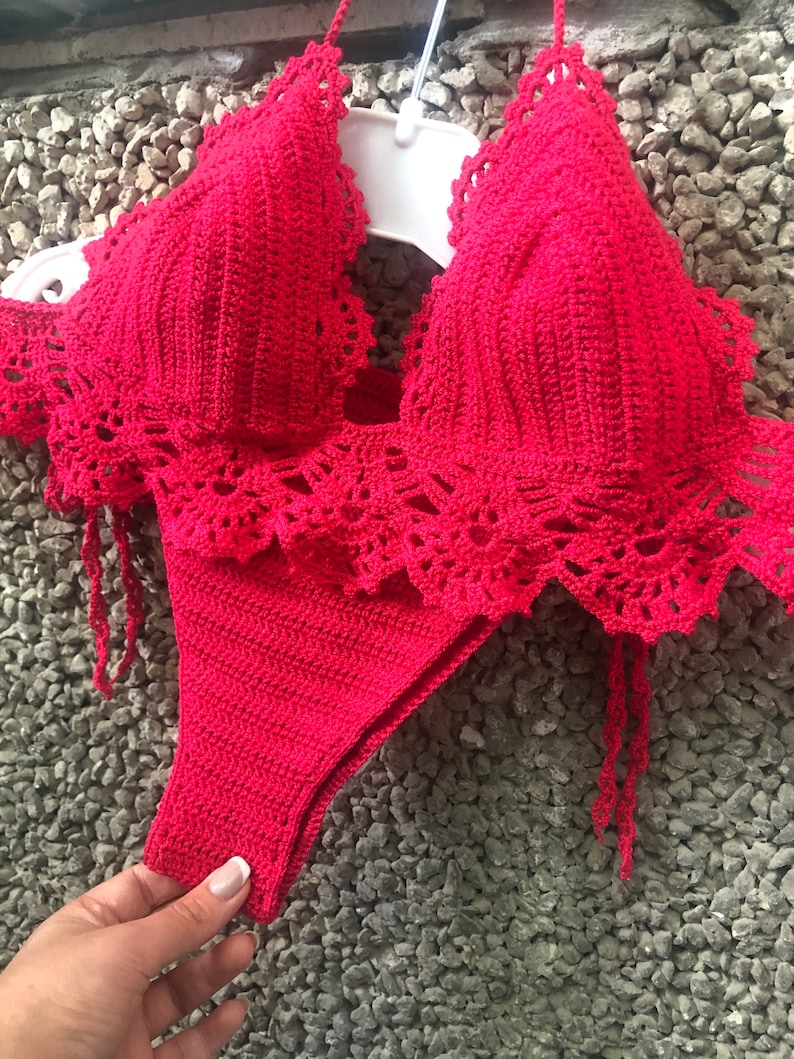 Crochet Bikini Set Sexy Set Knitted Swimsuit Brazilian Bottom Handmade Boho Style Halter Bikini