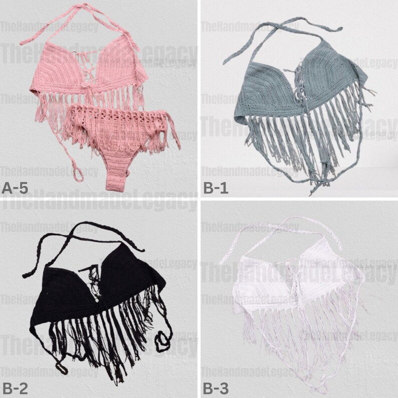 Tag : Crochet Knitted Tassel Bikini Set Swimwear Dress Beachwear Bra Top Thong Summer Bathing Suit
