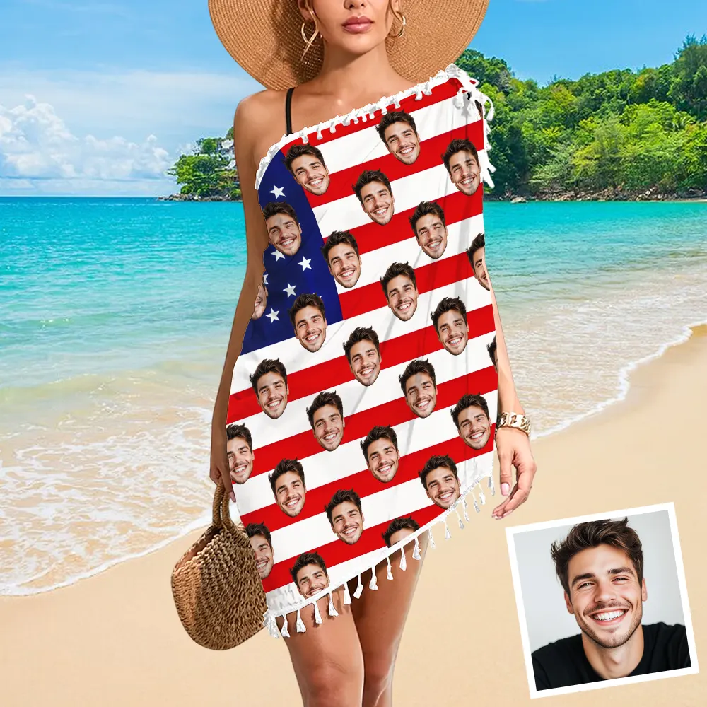 Custom Face Fringe SwimSwear Wrap American Flag Bikini Swimsuit Tassels Cover Ups Skirt X 182628
