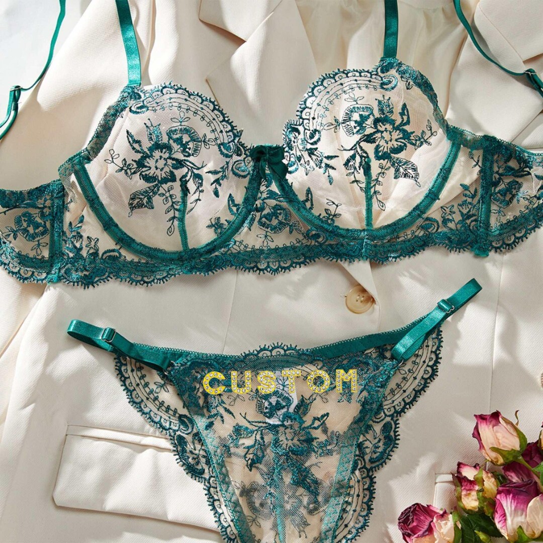 Related pictures for Custom Name Thong Flower Mesh Embroidery Gathered Lingerie Set Custom Thong With Letter Flower