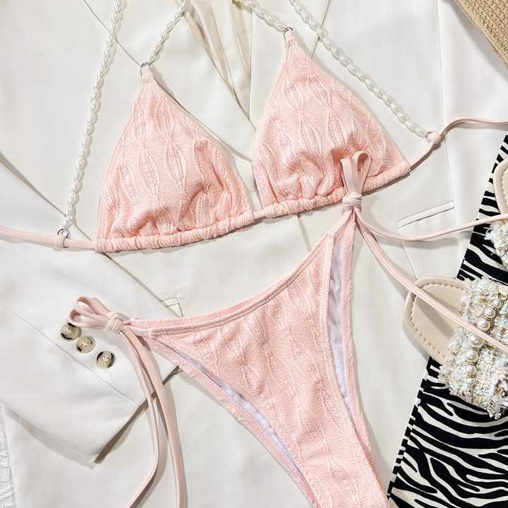 Custom Wholesale Price Women Pink Triangle Bikini Two Piece Swimsuit 46376