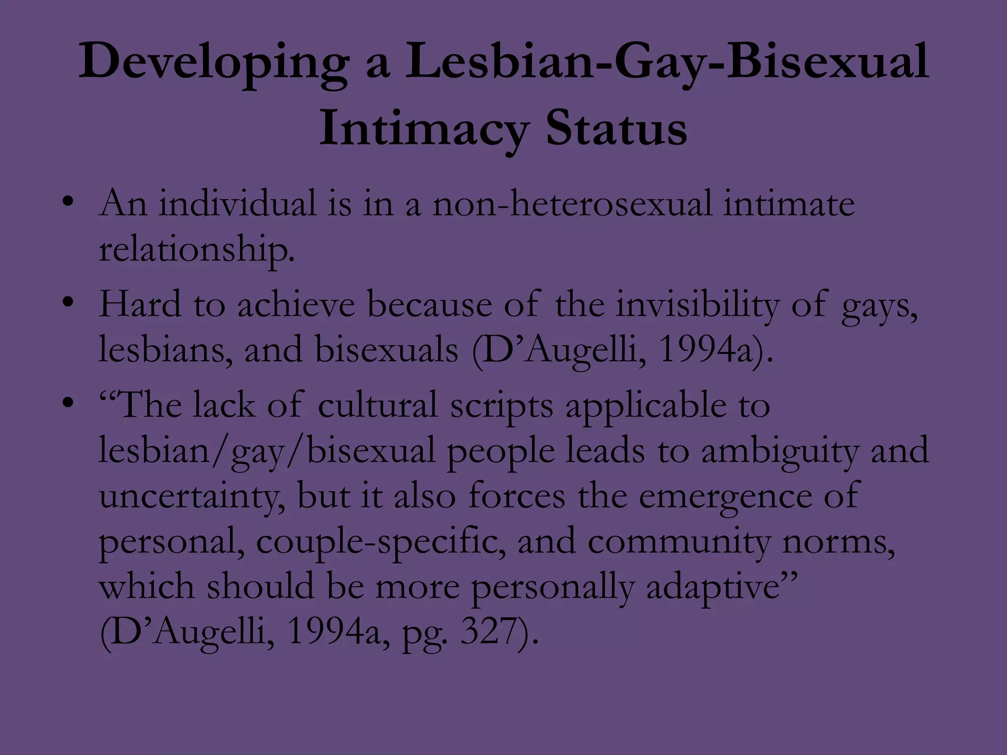 D Augelli S Theory Of Lesbian Gay And Bisexual Development PPTX