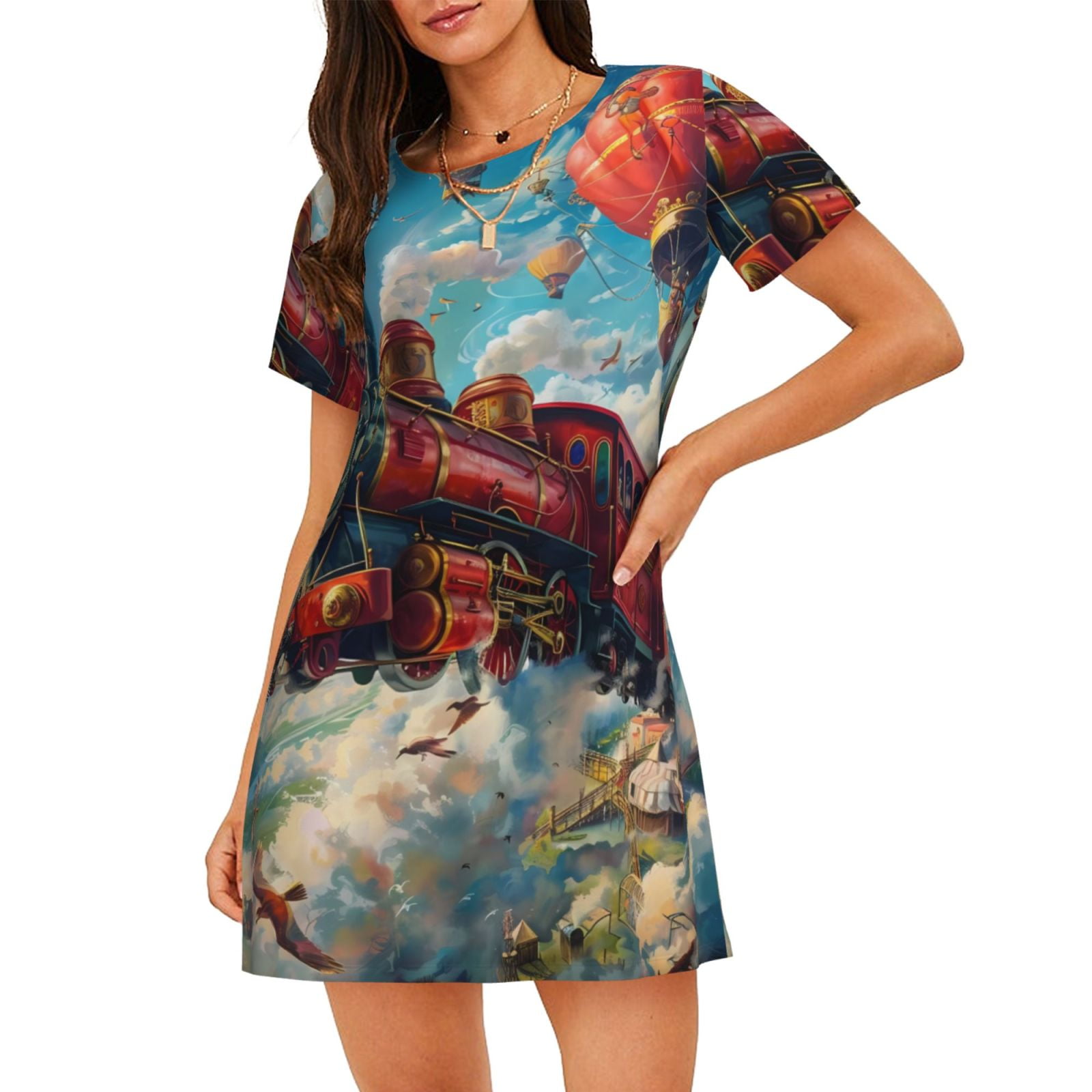 Tag : Daiia Beautiful Red Train Hot Air Balloon Print Women S Nightshirt Soft Nightgowns For Women