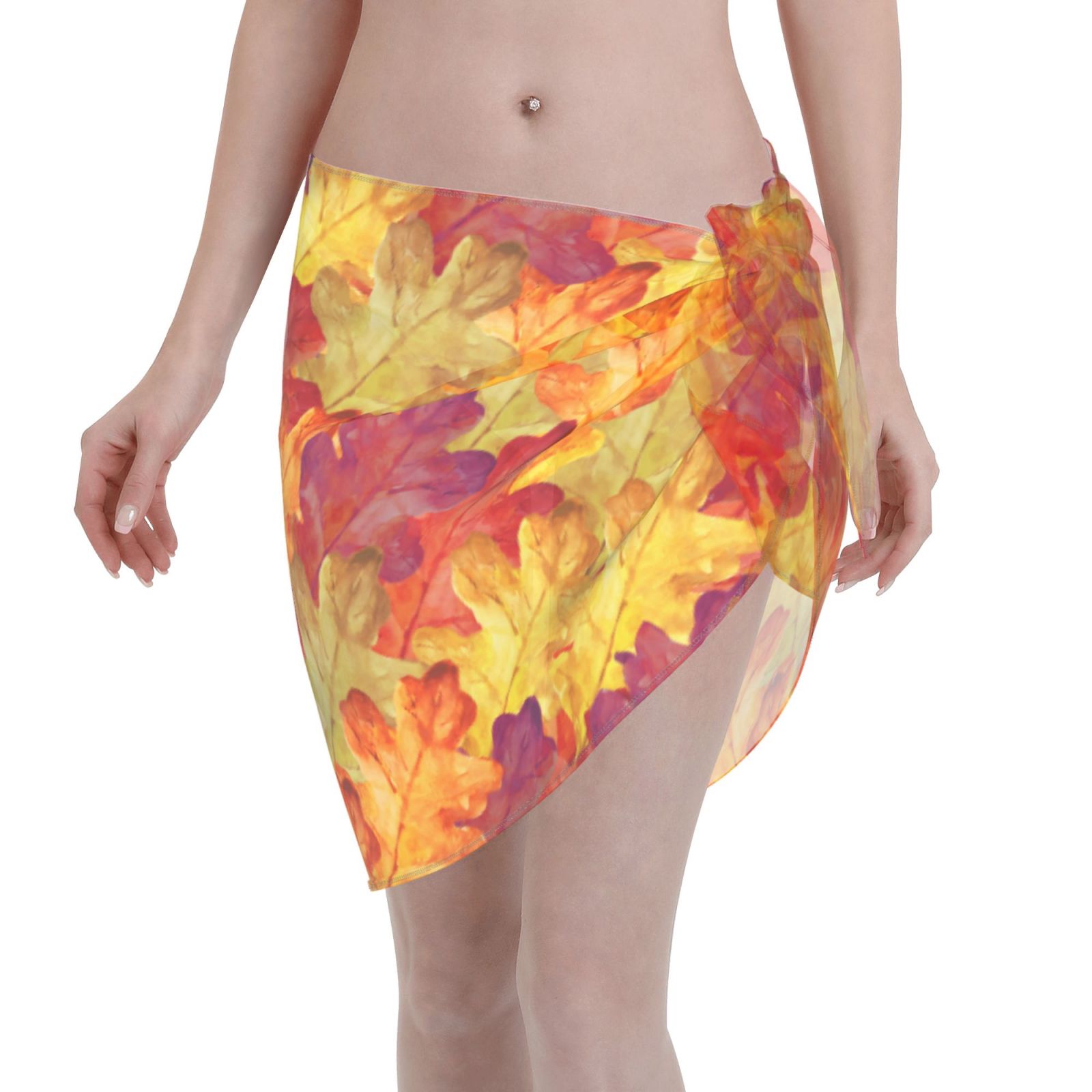 Disketp Autumn Leaves Women Swimsuit Cover Up Short Chiffon Summer Beach Sarong Bikini Wrap is a popular picture for sexy and hot.