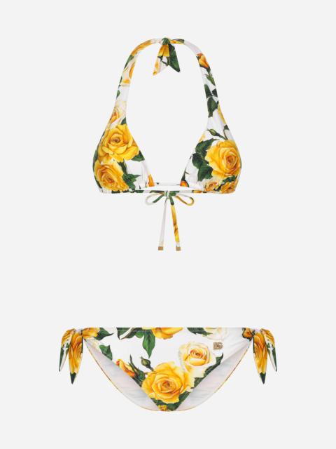 Tag : Dolce Gabbana Triangle Bikini With Yellow Rose Print REVERSIBLE