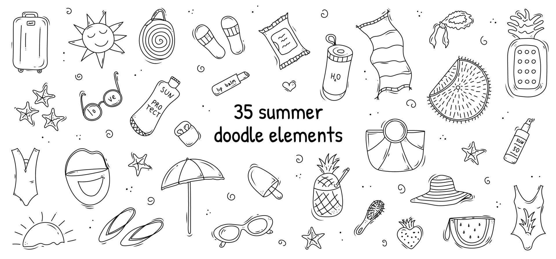 Doodle Set Of Cute Vector Summer Elements Bikini Luggage Slates Beach Towel Water Umbrella pictures has 500 x 400 · 50 kB · jpeg.