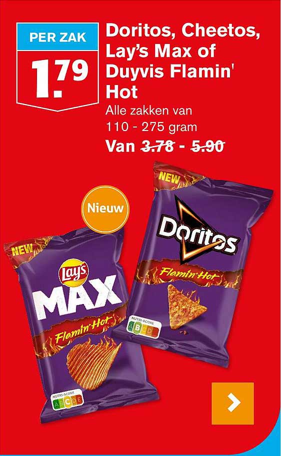 Tag : Doritos Cheetos Lay S Max Of Duyvis Flamin Hot Aanbieding Bij Hoogvliet