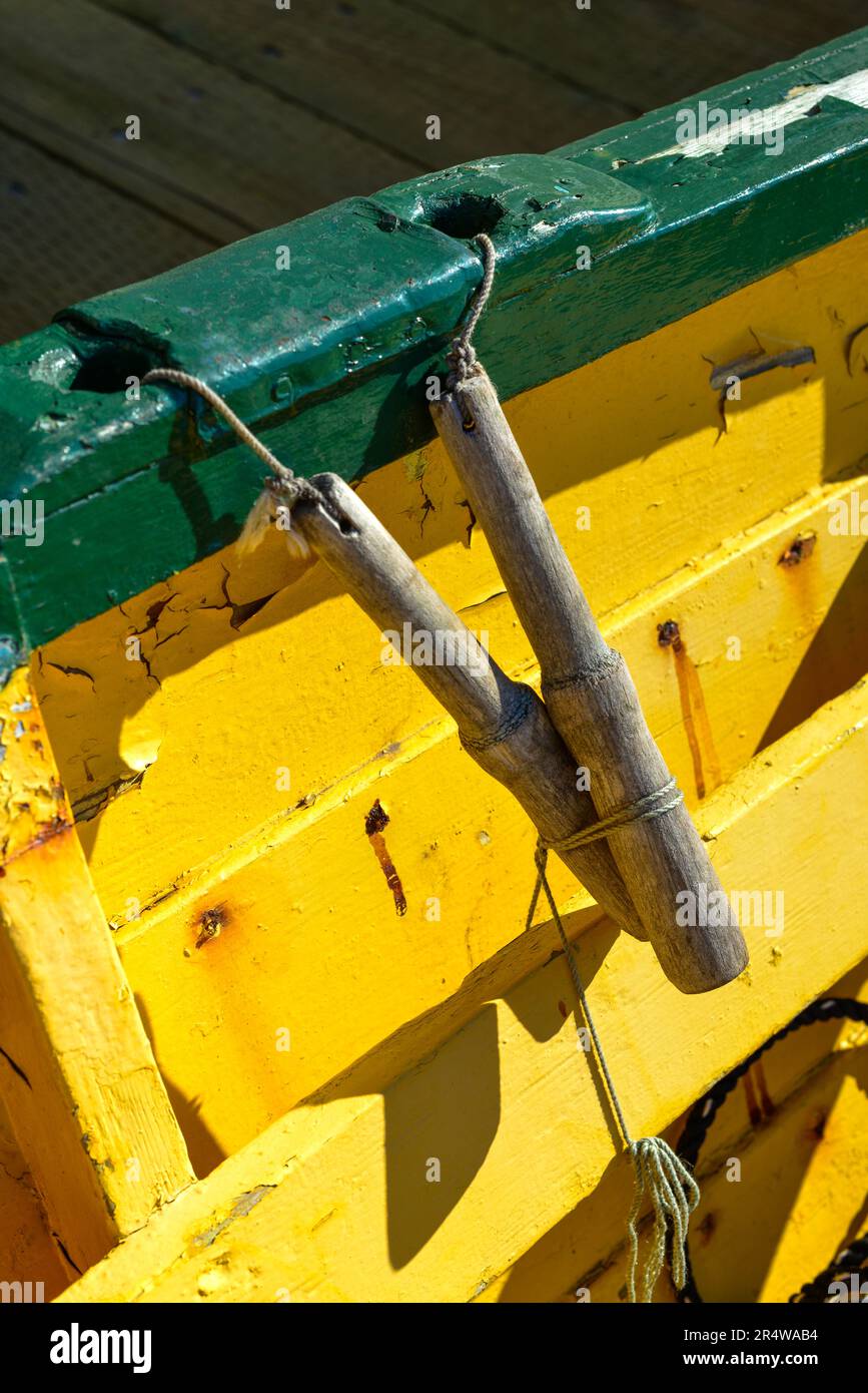 Tag : Downward View Of A Yellow Wooden Boat With Dark Green Trim You Can See A Wood Dildo And Rope
