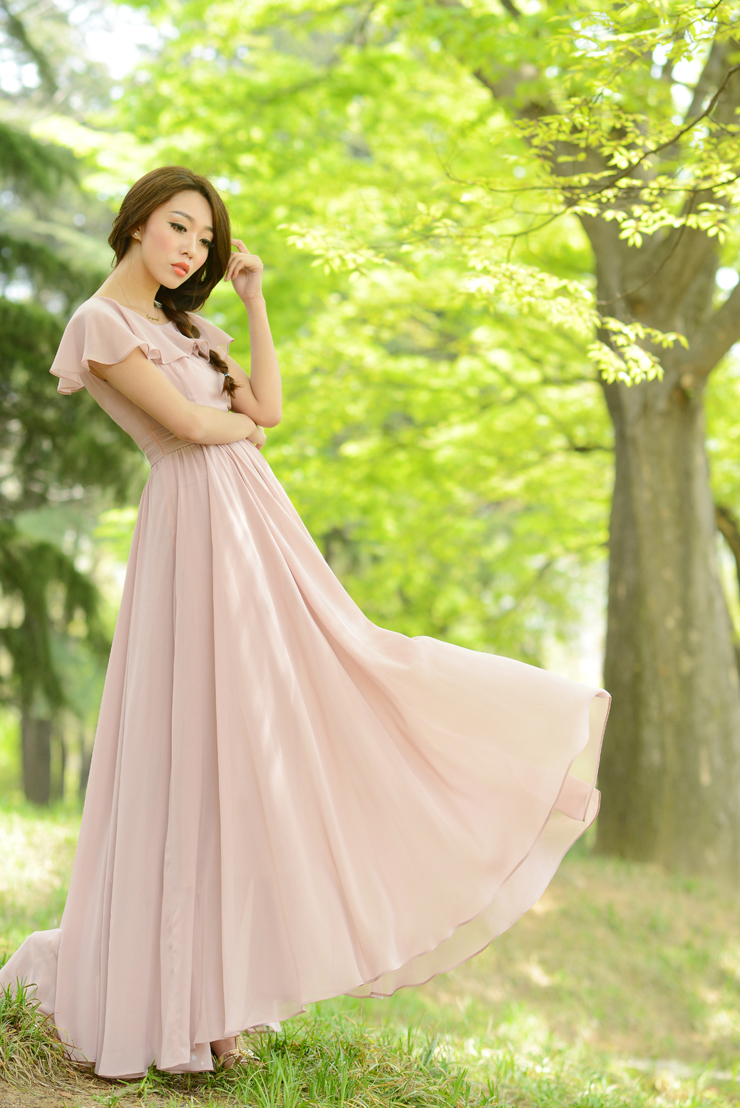 Tag : Duchess Fashion Malaysia Online Clothes Shopping Elegant Nude Pink Chiffon Long Dress