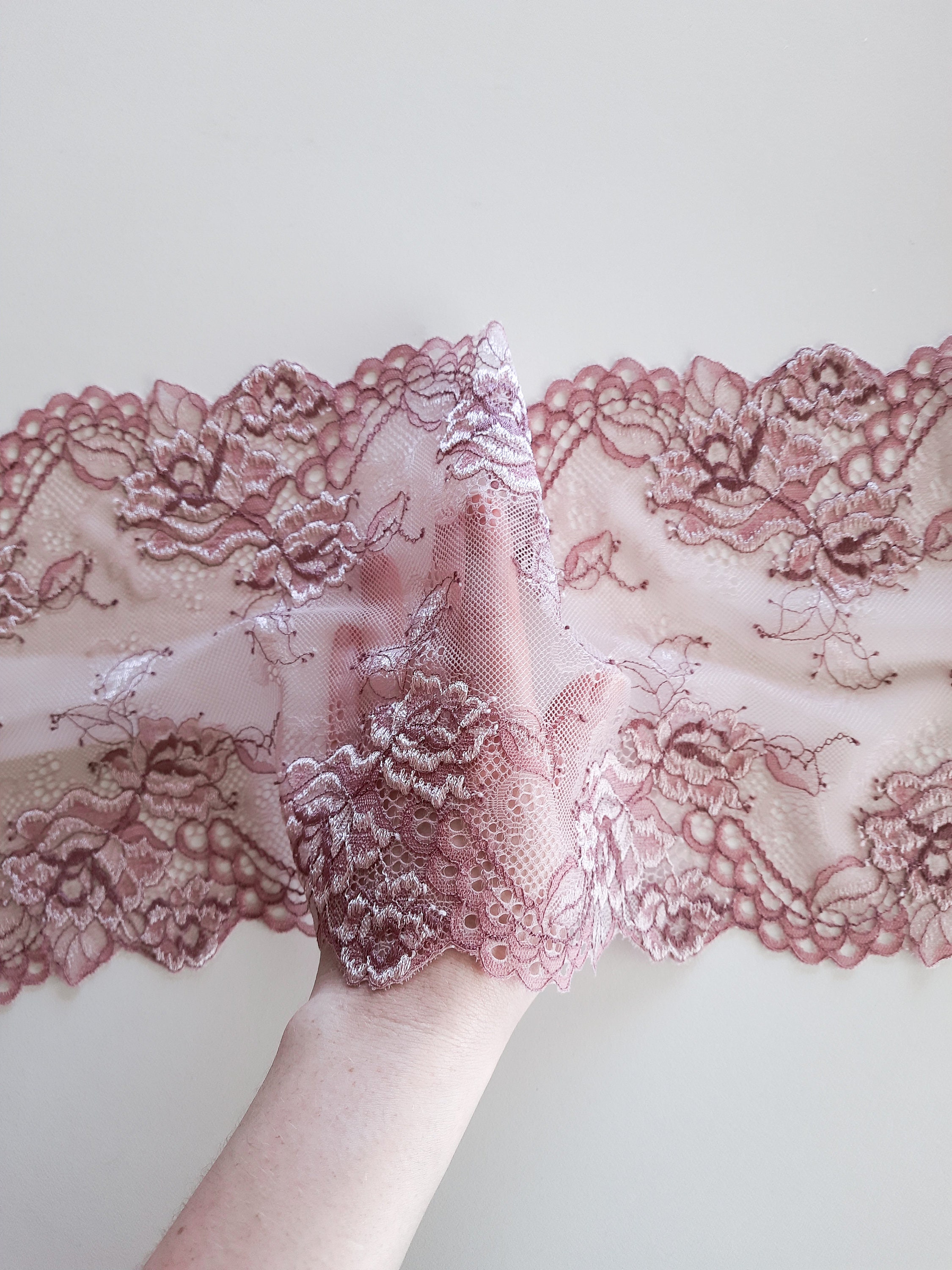 Dusty Pink Lace Trim For Sewing Soft Stretch Floral Lace For Bra Making And Lingerie Etsy 153525