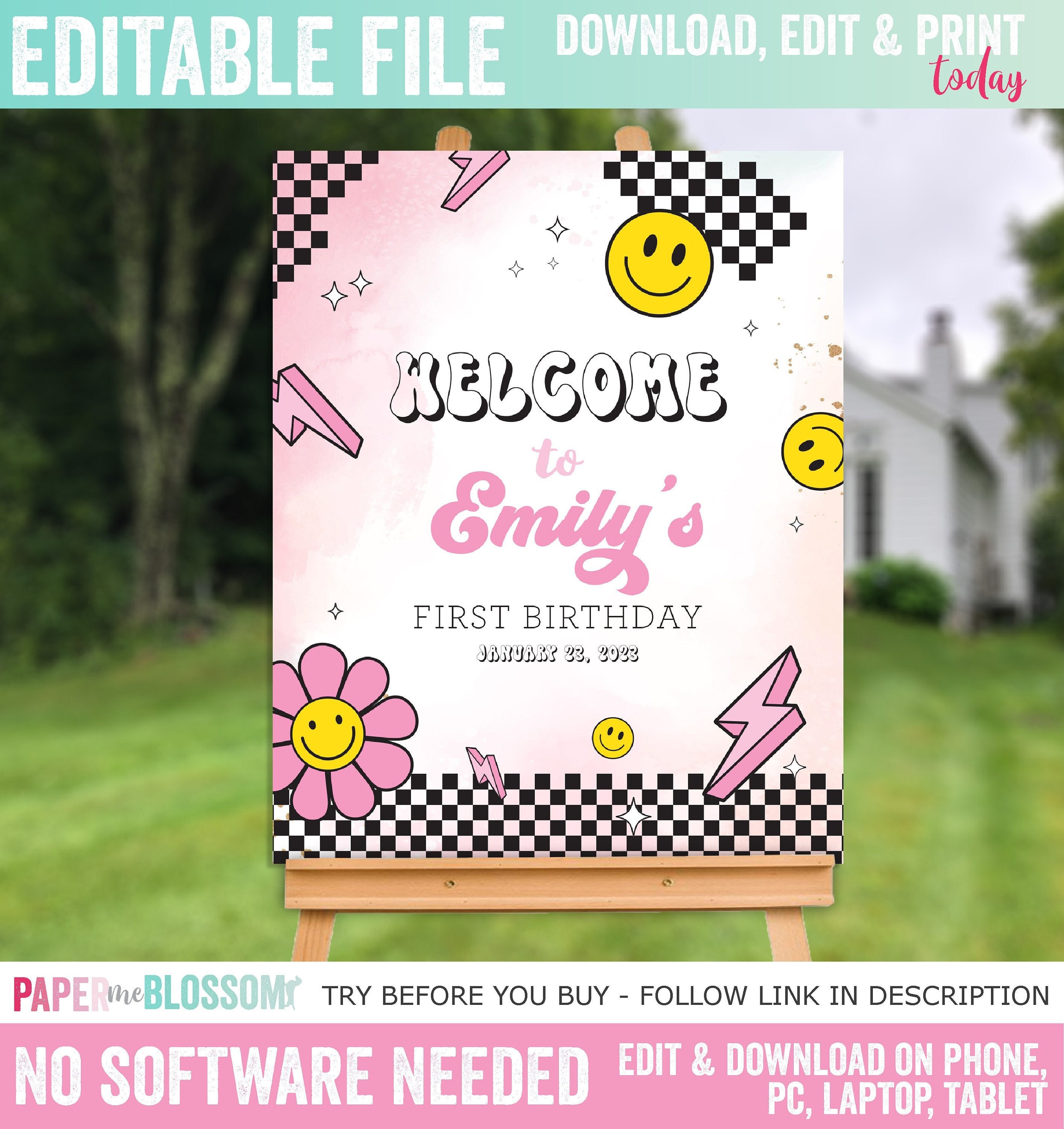 Tag : EDITABLE One Happy Babe Retro Groovy Birthday Welcome Poster Groovy S Girl Birthday Welcome