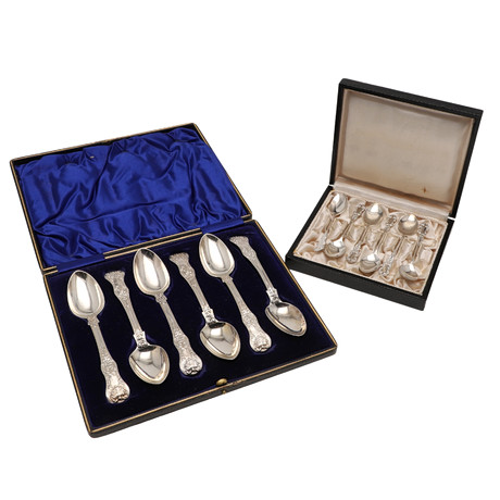 EN UPPSÄTTNING MED SEX SILVERTESKEDAR AV GEORGE IV SKALMÖNSTER TILLSAMMANS MED EN ANNAN is a popular picture for sexy and hot.