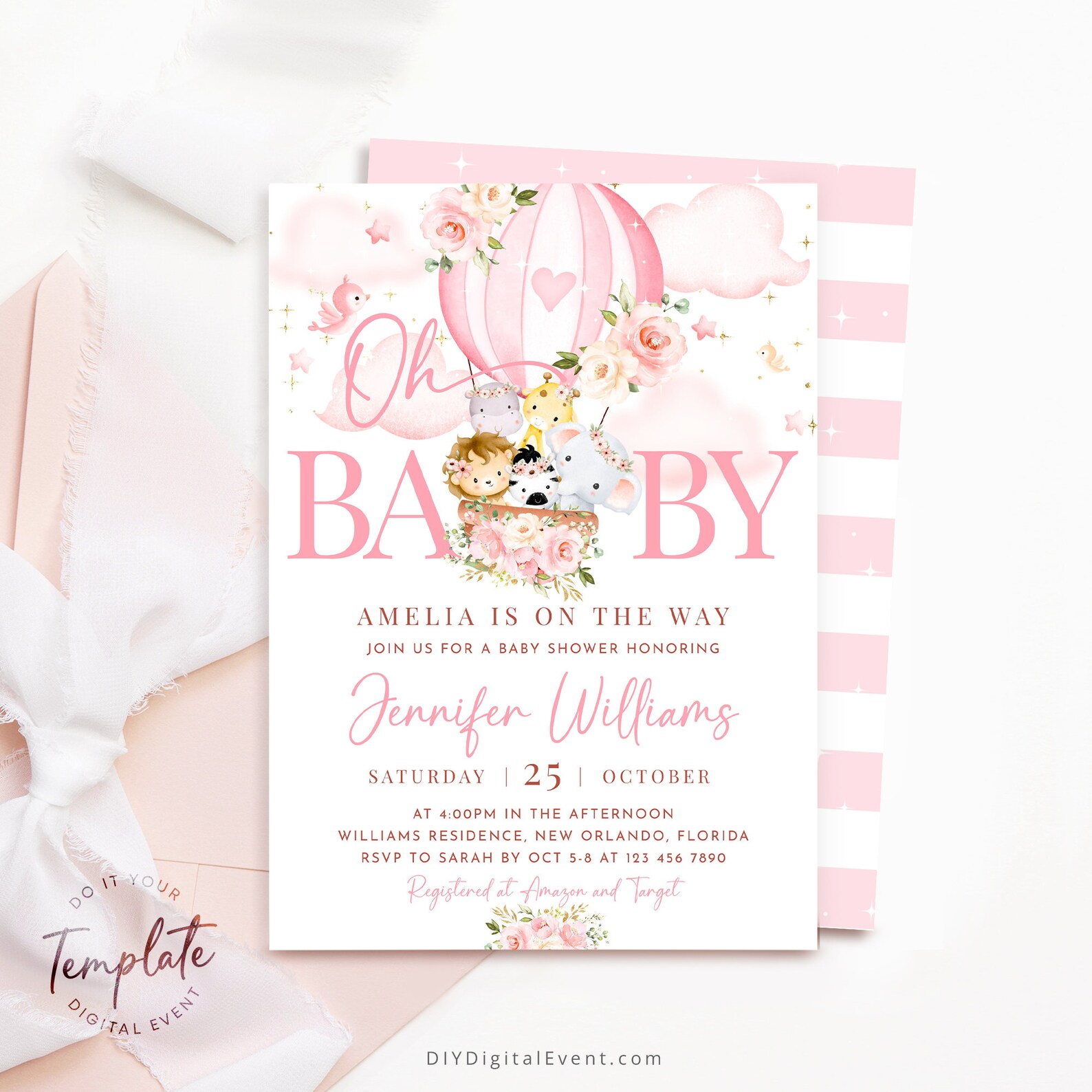 Editable Hot Air Balloon Baby Shower Invitation Template Etsy