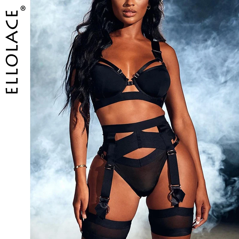 Ellolace Sexy Goth Women S Underwear Lingerie Hollow Out Black Exotic Brief 3 Piece Sets Setup is a popular picture for sexy and hot.