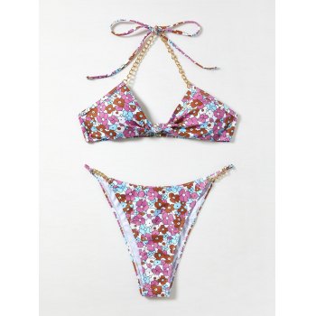 Emmiol Free Shipping 2025 Chain Embellished Floral Print Bikini Set Lilac M In Bikini Sets is a popular picture for sexy and hot.