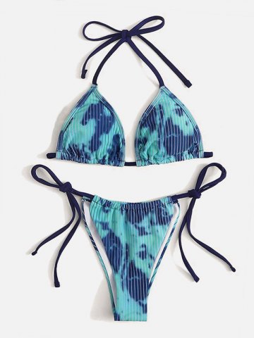 Emmiol Free Shipping 2025 Pinstriped Tie Dye Halter Bikini Set Blue M In Bikini Sets Online is a popular picture for sexy and hot.