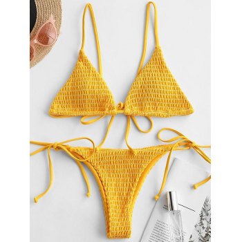 Emmiol Free Shipping Smocked Triangle Bikini Set Yellow L In Bikini Sets Online Store EMMIOL is a popular picture for sexy and hot.
