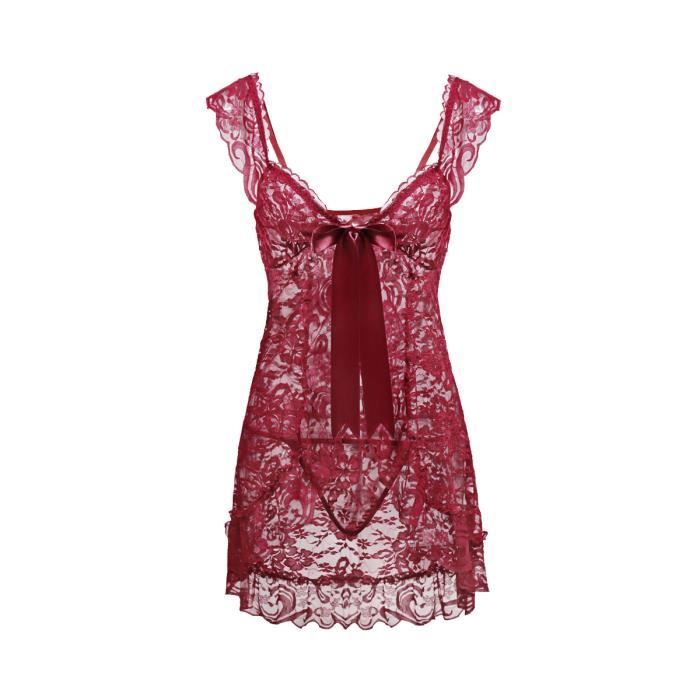 Tag : Ensemble Lingerie Sexy Jupe String En Dentelle Lace Nuisette Coquin Transparent Noeud Papillon