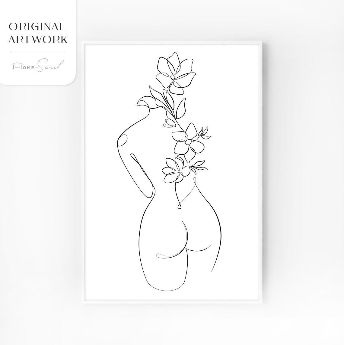 Tag : Erotic One Line Art Nude Line Drawing Sexy Drawing Minimal Outline Flowers Naked Woman Print