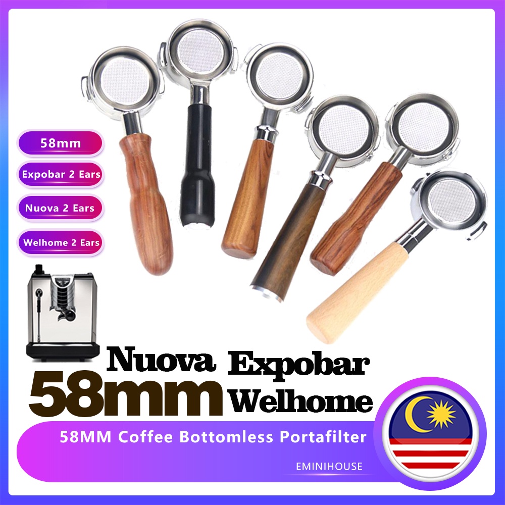 Espresso Coffee Machine Naked Portafilter Stainless Steel Wood Handle Bottomless For Mm