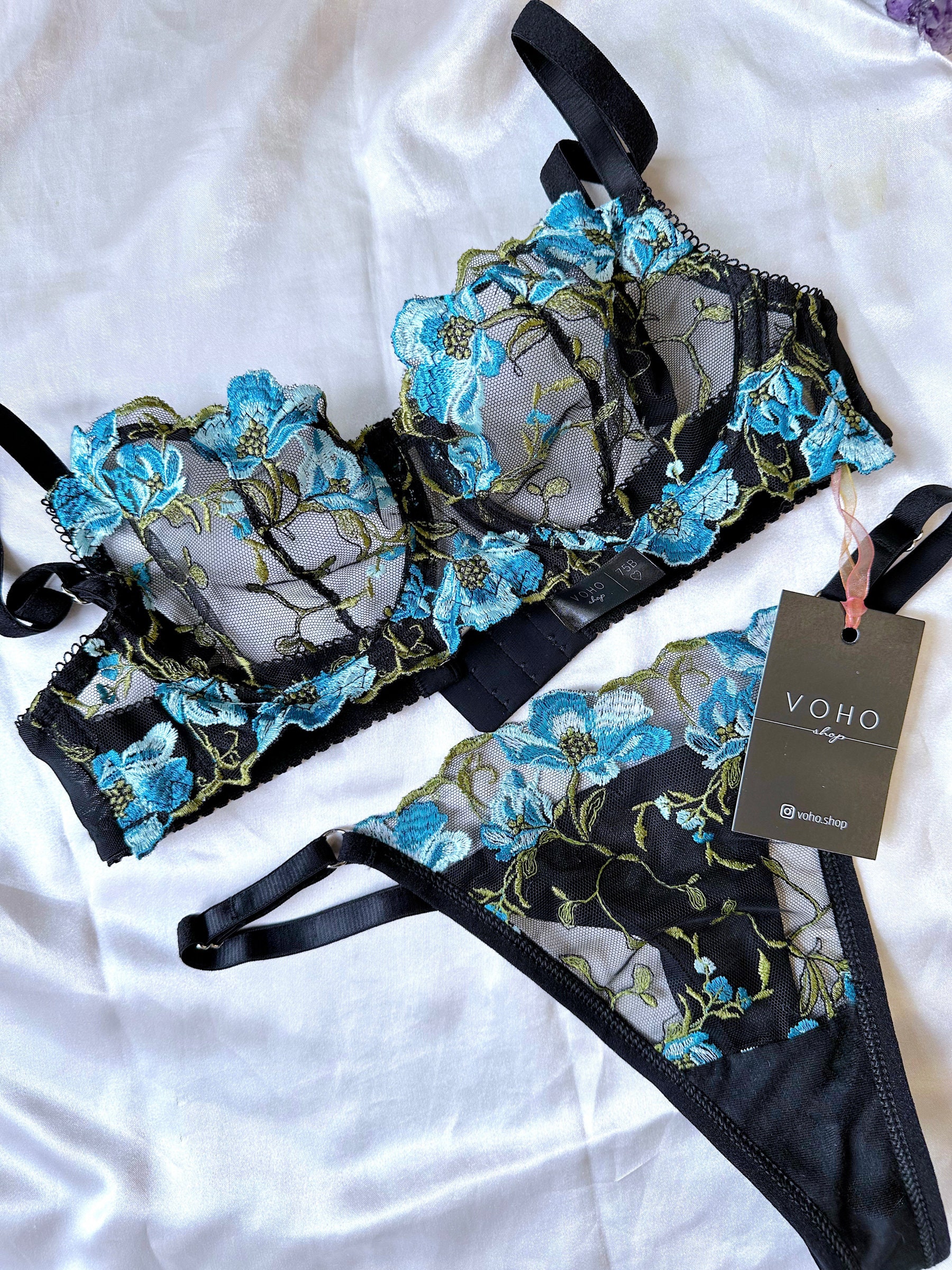Tag : Ethereal Embroidered Lingerie Set Romantic Floral Transparency Lace Flowered Sheer Thong