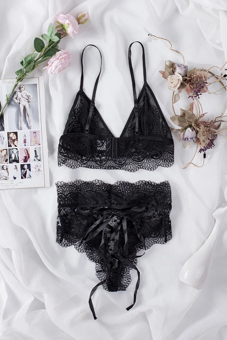 European And American Breathable Wirefree Lingerie Sling Lace Three Point Bra And Briefs Set For is a popular picture for sexy and hot.