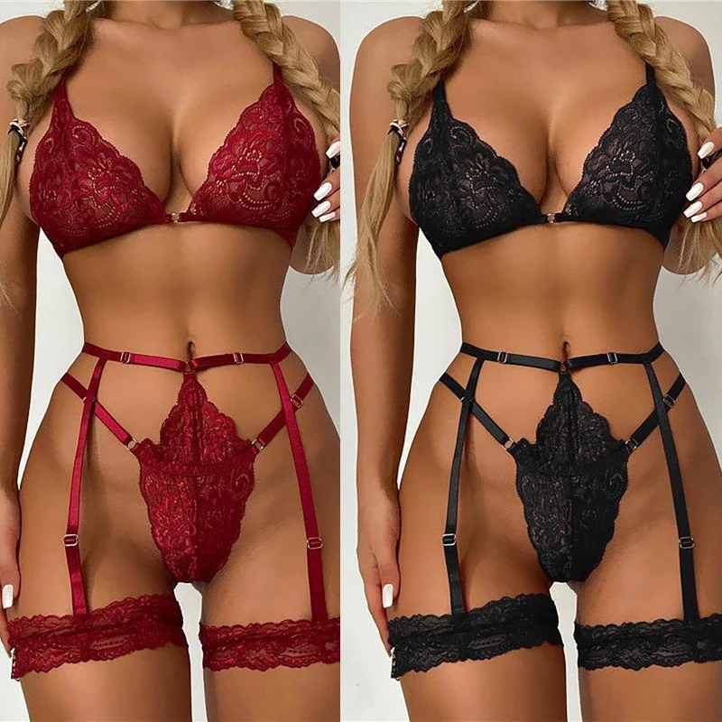 Exotic Lingerie Sexy Floral Lace Underwear Erotic Open Crotch Babydoll Plus Size Women Porn Bra