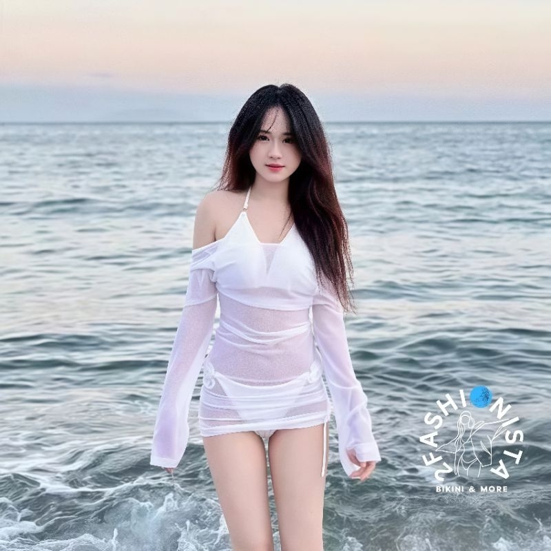 Tag : FASHIONISTA Váy lưới tay loe body xuyên thấu mặc ngoài Bikini Dáng