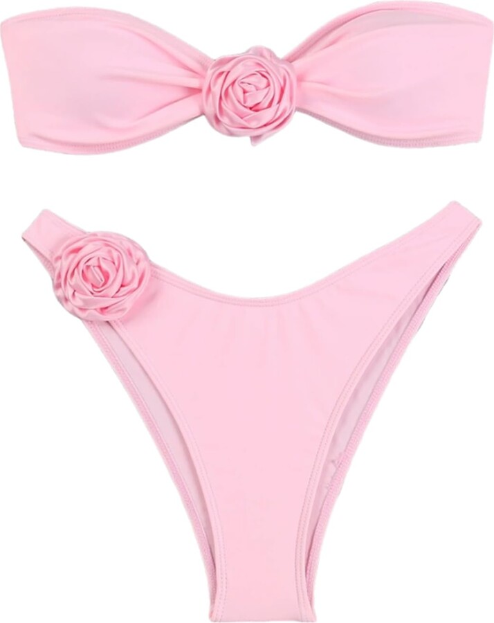 FUVYKOL Women S D Floral Piece Bikini Sets Bandeau Swimsuits High Cut Cheeky Thong Bathing is a popular picture for sexy and hot.