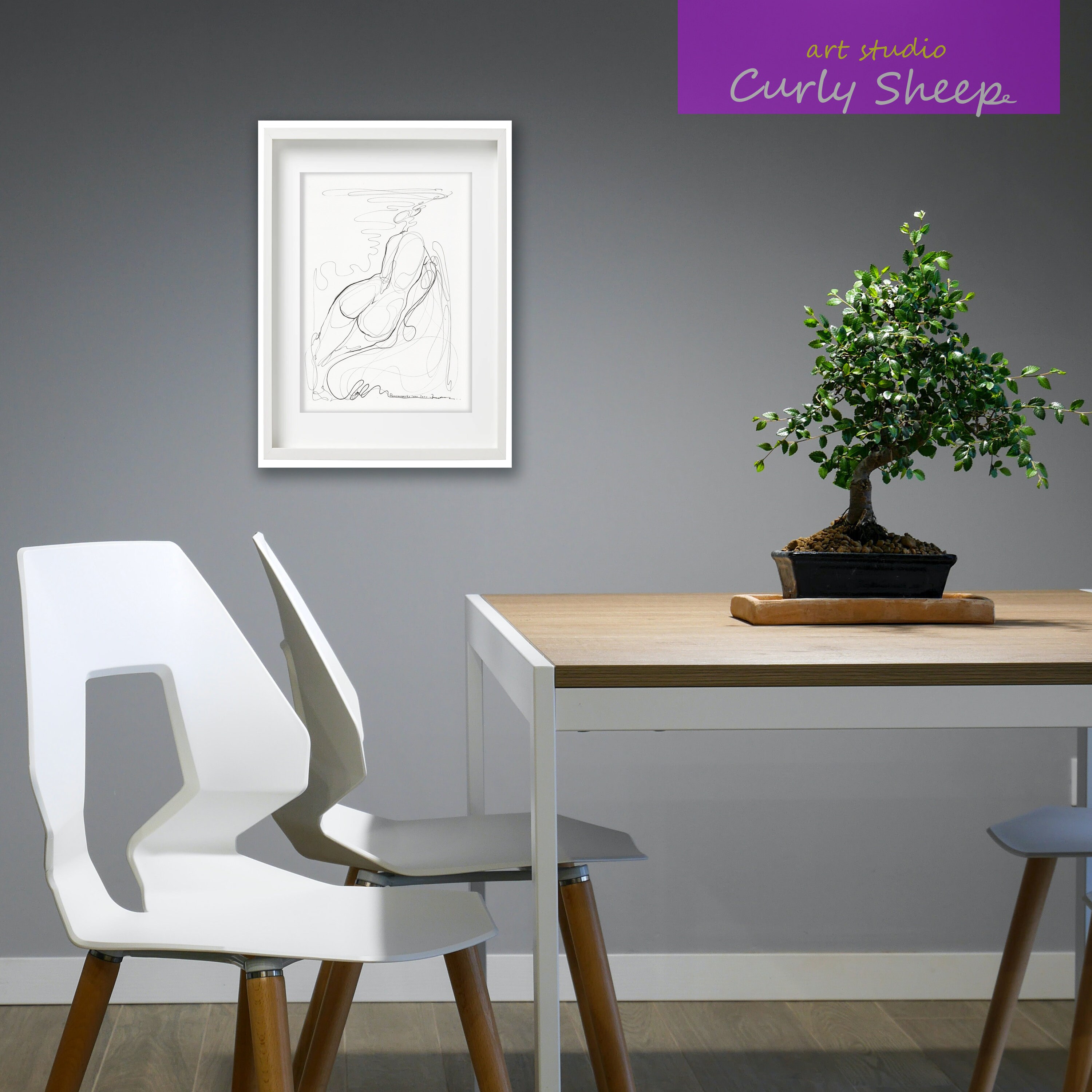 Female Naked Figure Original Pen Drawing A4 Naked Body Drawing Nude Pen Sketch Erotic