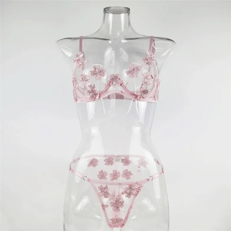 Finetoo Valentines Day Lingerie Floral Lingerie Embroidered Pink Color Women S Lingerie 89523
