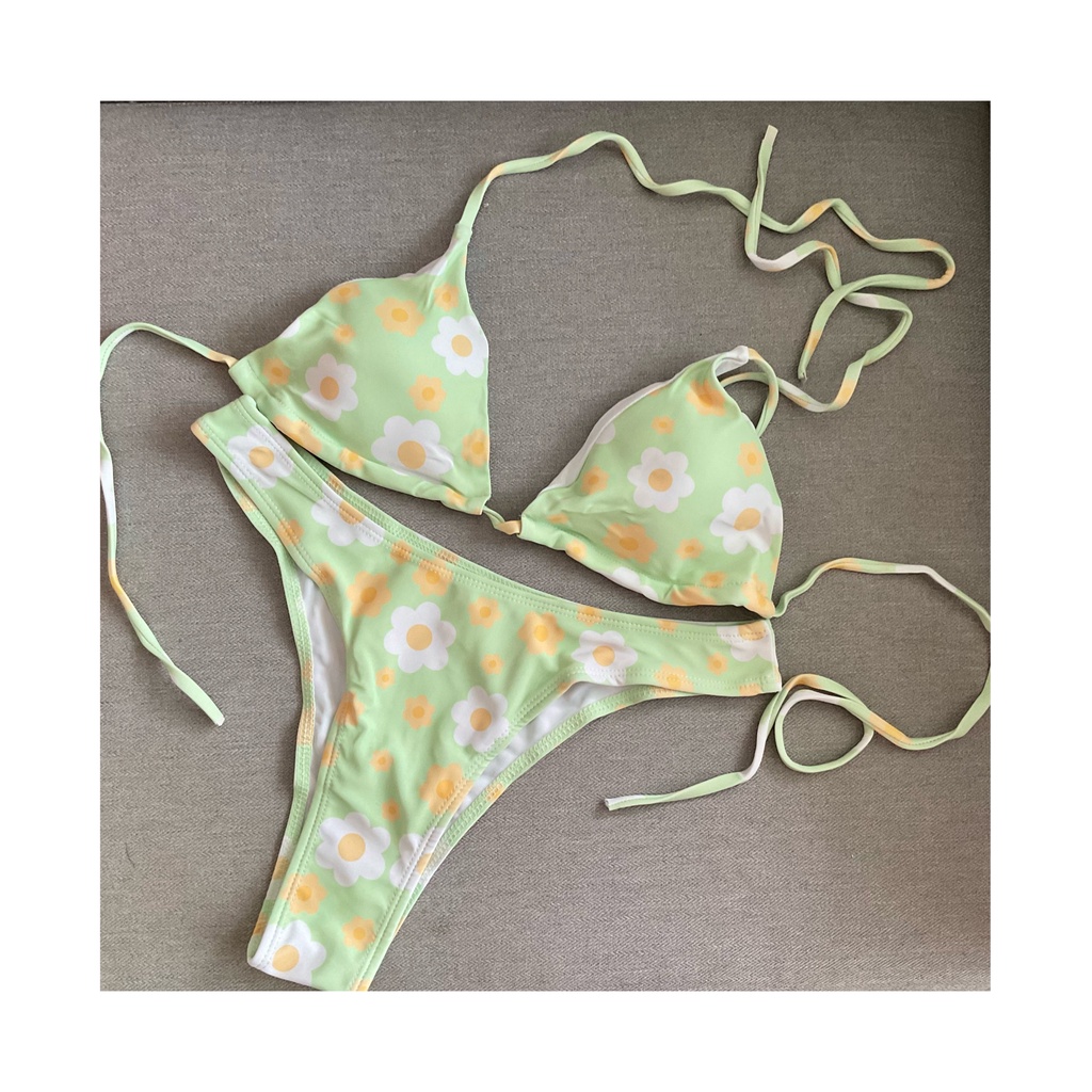 Floral Bikini Flower Printed Lime Green Two Piece Swimsuit Bikini Beach Wear Women Swimwear is a popular picture for sexy and hot.