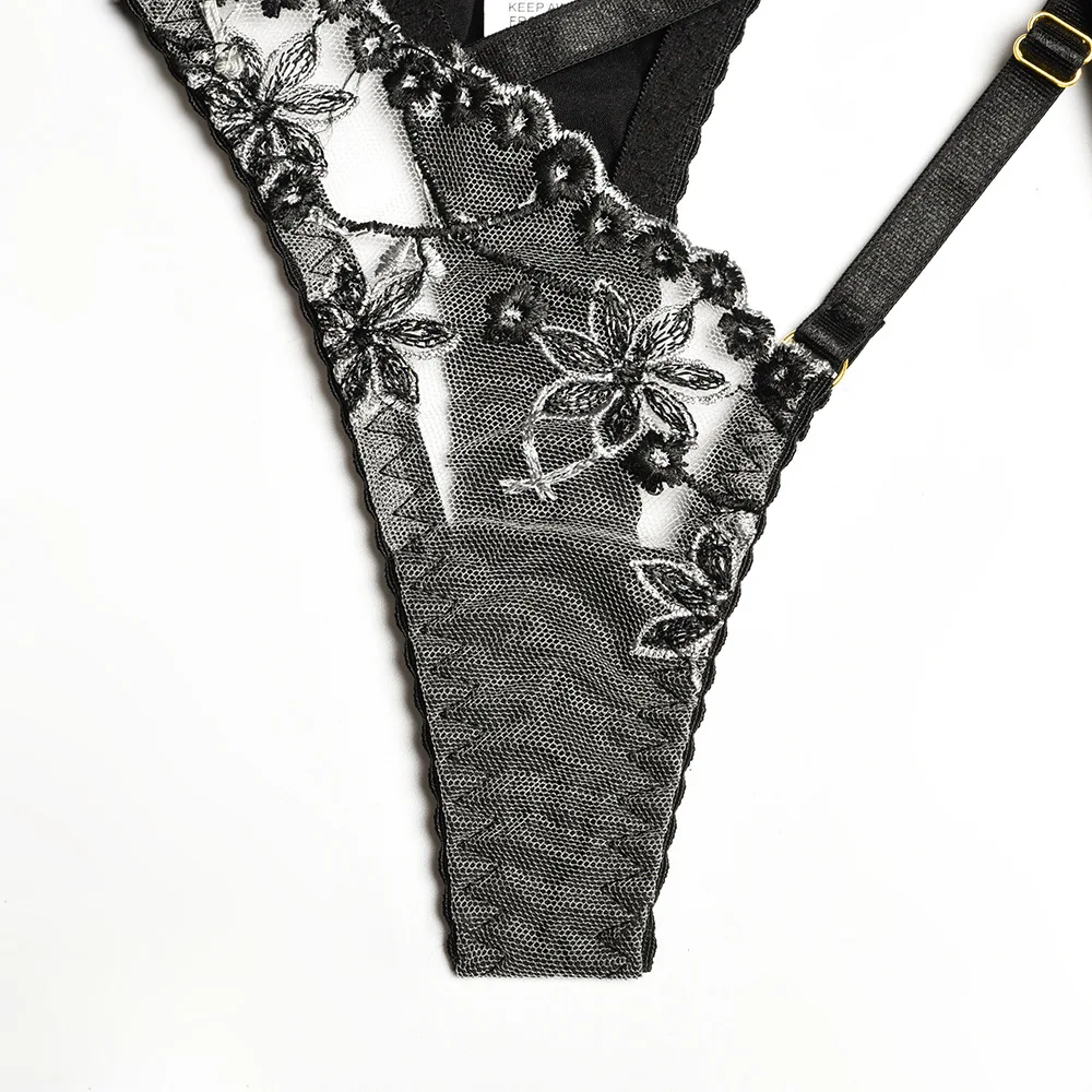 Floral Embroidered Sexy Costumes Lace Underwear Femme Intimates Piece Mesh Lingerie Women See is a popular picture for sexy and hot.