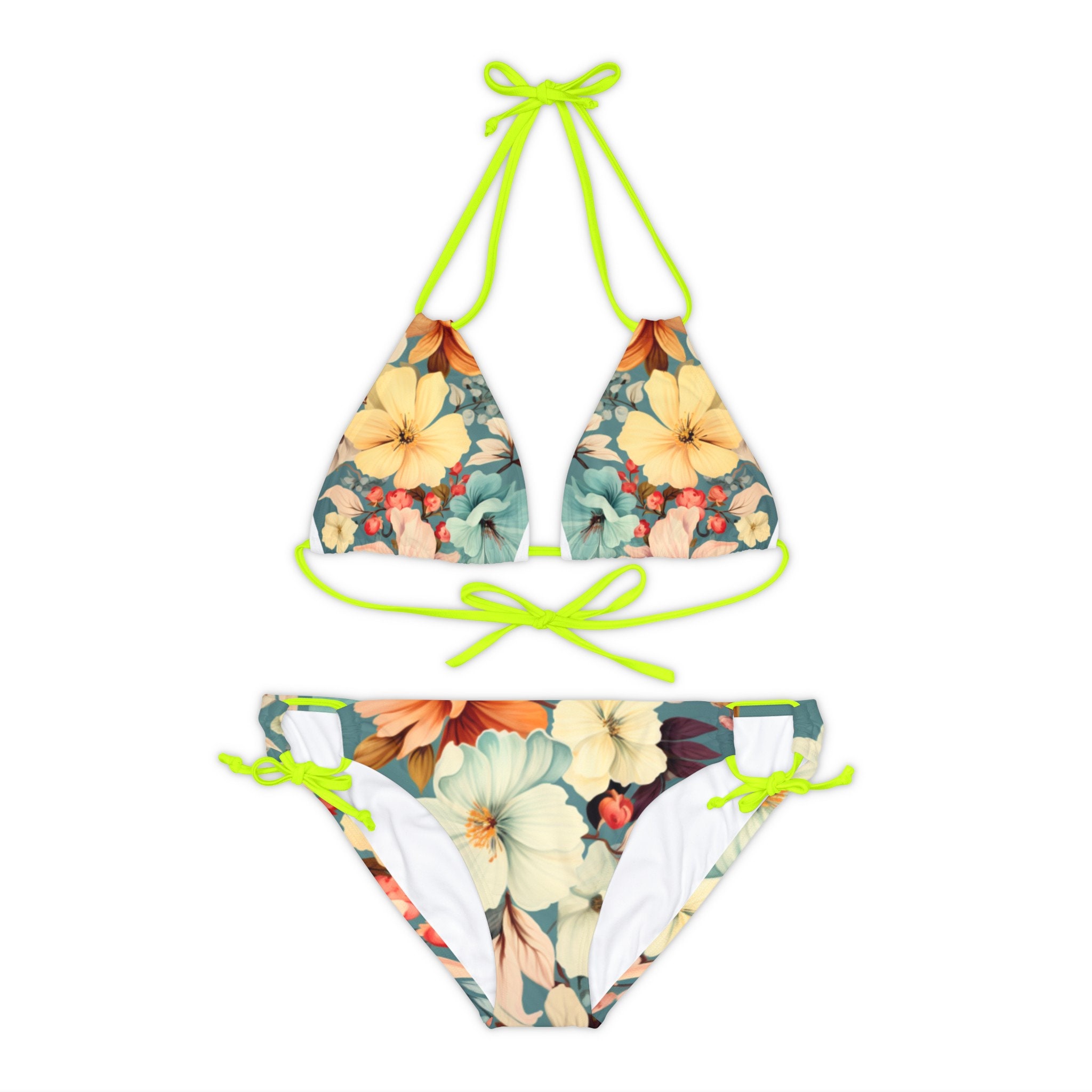 Related pictures for Floral Strappy Bikini Set Pestel Color Bikini Bathing Suit For Summer Vacation Floral Two Piece