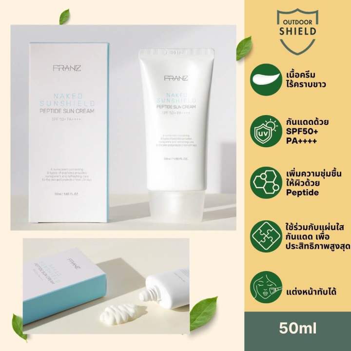Tag : Franz naked sunshield peptide Powerful sunscreen ครมกนแดดเนอเบาใสไรคราบขาว SPF50 PA ม