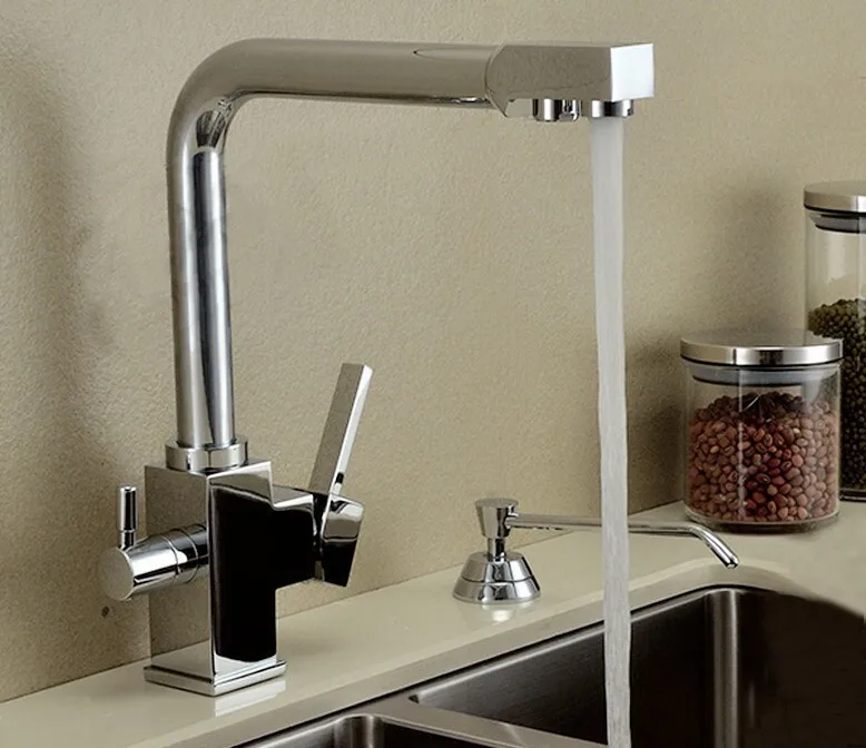 Tag : Free Shipping High Quality 100 Brass Chrome Polished 3 Way Hot Cold Kitchen Sink Mixer Faucet