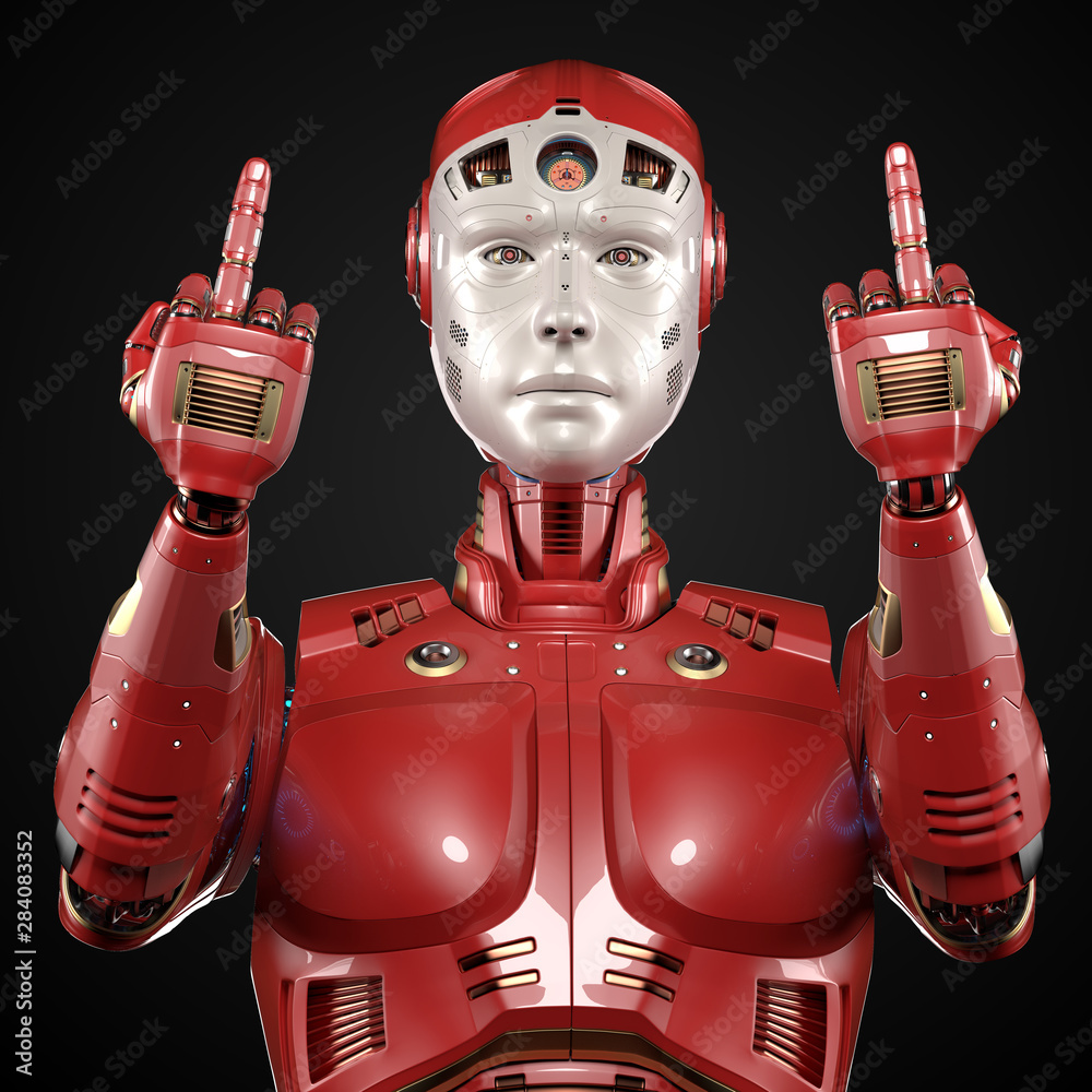 Futuristic Robot Or Red Cyborg Showing Middle Finger In Rude Way Meaning Fuck Off Isolated On pictures has 500 x 400 · 50 kB · jpeg.