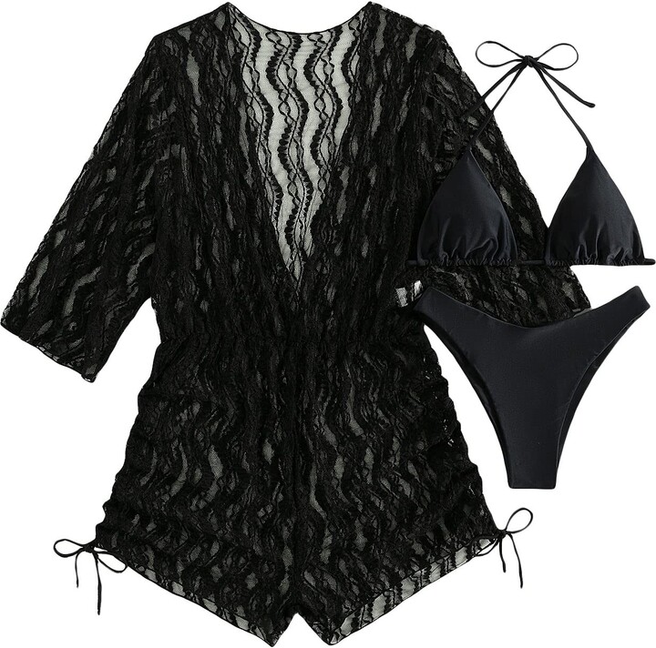 Tag : GORGLITTER Women S 3 Piece Swimsuit Set Halter Triangle Bikini Bathing Suits With Beach Cover Up
