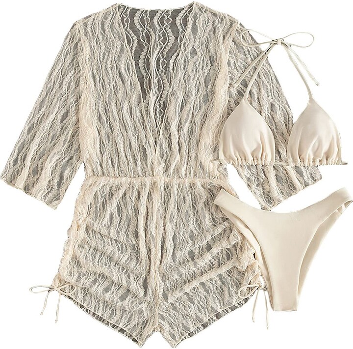 Tag : GORGLITTER Women S 3 Piece Swimsuit Set Halter Triangle Bikini Bathing Suits With Beach Cover Up