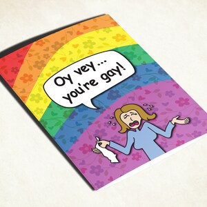 Gay Lesbian Rainbow LGBT Pride Flag Funny Card Coming Out Gift Support Yiddish Gay Anniversary