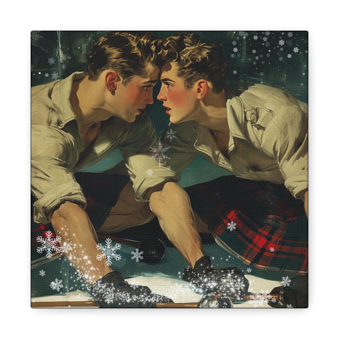 Gay Romance Art Print Charming Retro Scottish Winter Themed Wall Art Surprise Surprise is a popular picture for sexy and hot.